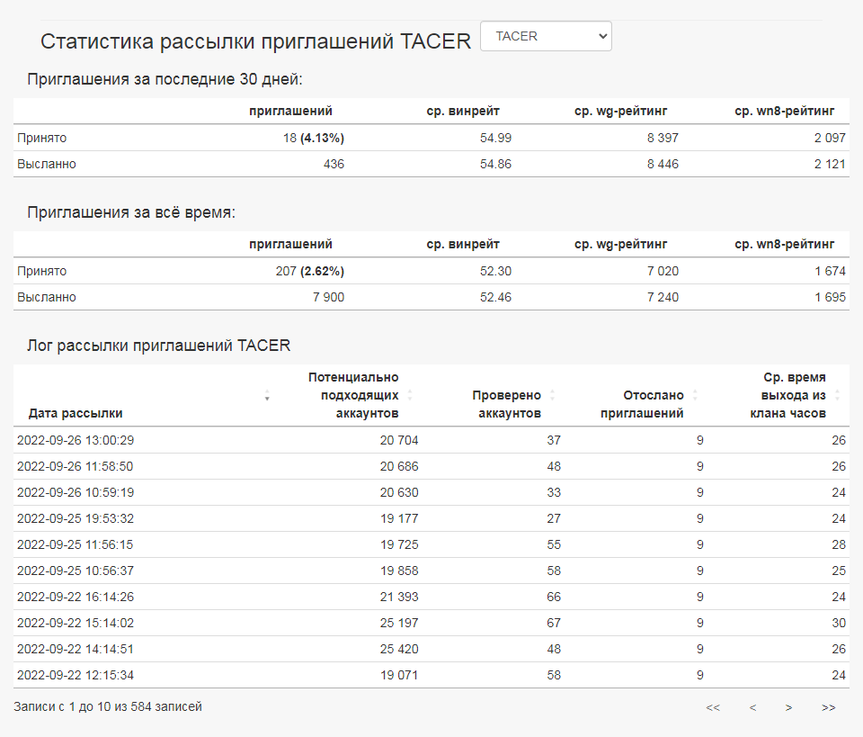 Рассылка приглашений в клан;